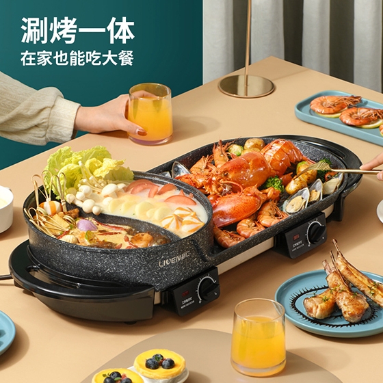 利仁大容量家用电烤炉鸳鸯火锅烤肉机
